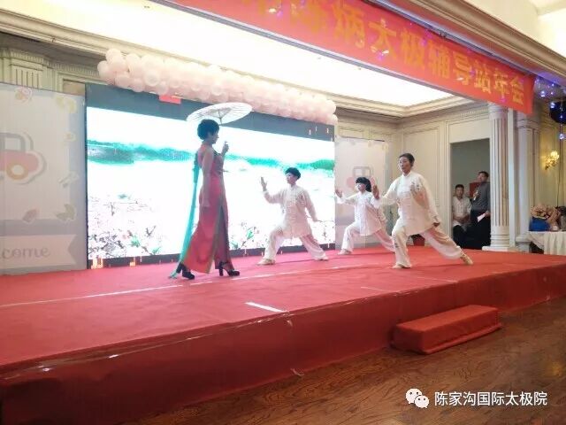会中,集体陈氏太极拳和谐十三式的表演,打响了我们乐清陈炳太极辅导站的品牌,受到在座各位会长的认可和鼓励。春晓美女、素平姐等,秀出专业的“太极、旗袍秀“,“剑、禅舞“,吸引全场眼球,使年会增添了不可多的色彩。